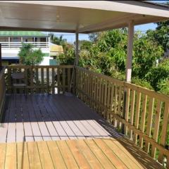 Upstairs, the home offers a comfortable and practical layout with two spacious bedrooms plus a sleepout, a built-in kitchen, tiled bathroom and a rear patio deck ideal for relaxing or entertaining with an elevated outlook.