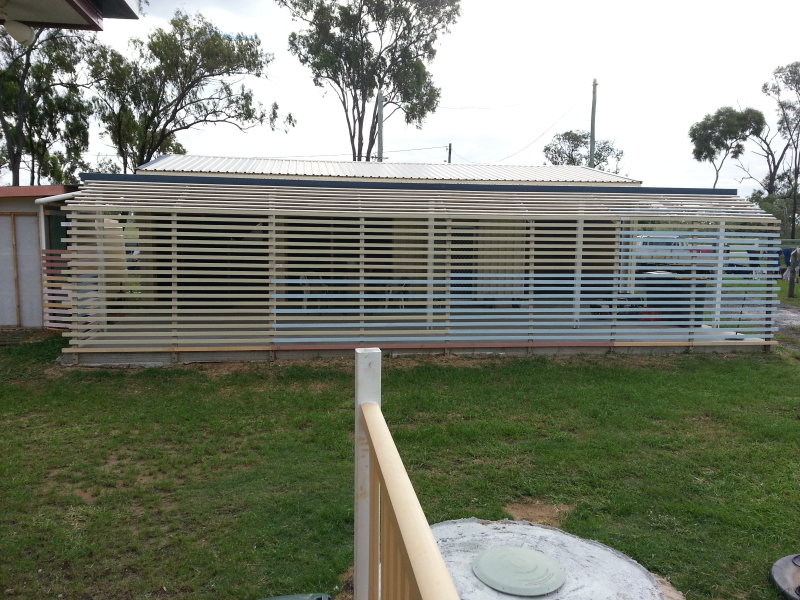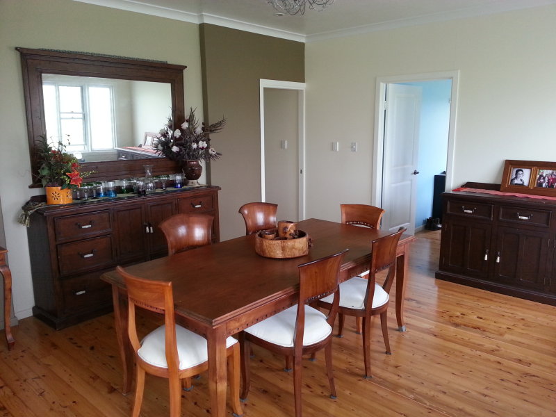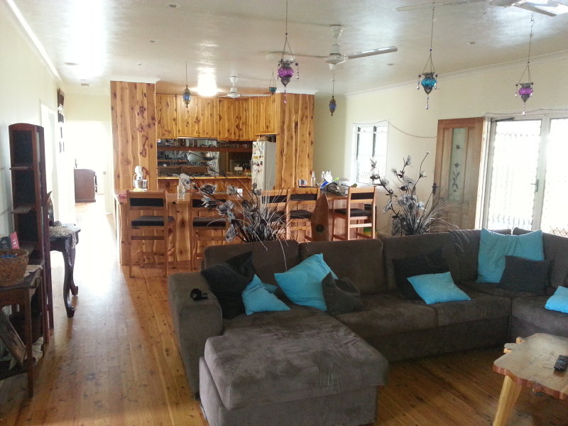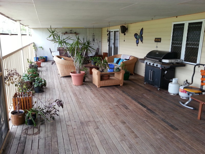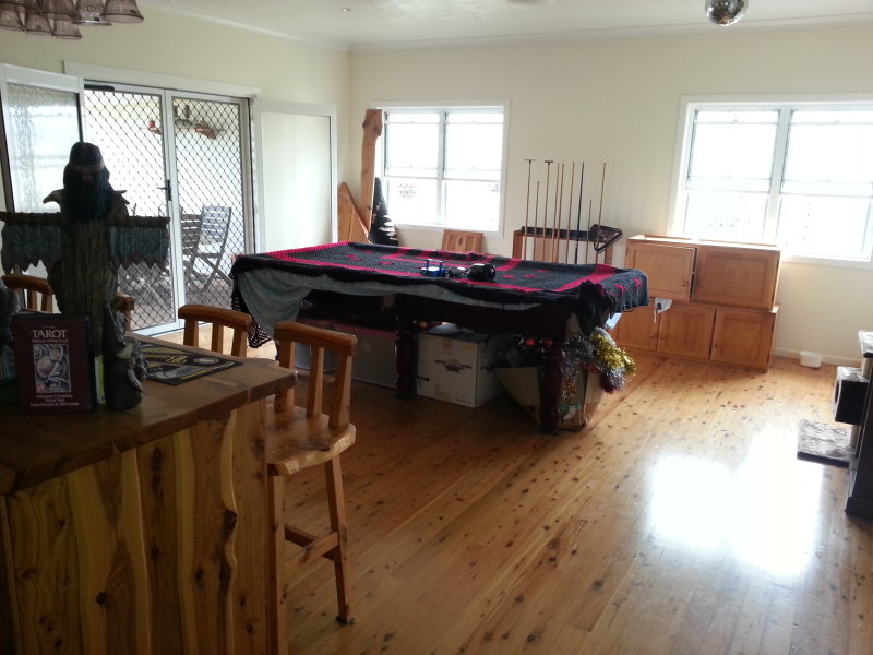 Designed for highly functional family living this modern 4 bedroom home set on steel posts and featuring attractive highly polished knotty pine floor boards, every bedroom is built-in three with walk-in wardrobes. There is a large entertaining formal dining room at one end of the home and a huge bar and billiards room at the other end, both opening through double doors to an extra wide front verandah with a sizeable fiberglass swimming pool set into the floor, all this under the main roof. The beautifully appointed bathroom finished with sparkling white tile features a deep set in spa bath. The internal built-in laundry houses a tiled shower and a second toilet. The rustic knotty timber kitchen with mirror tile splash backs blends to the timber theme of this home. A brilliant addition to this property is the spacious 2 bedroom fully self-contained living quarters. Both bedrooms are built-in the larger having a walk-in robe. Relaxing is easy on the wide full length under roof cool semi-enclosed patio.